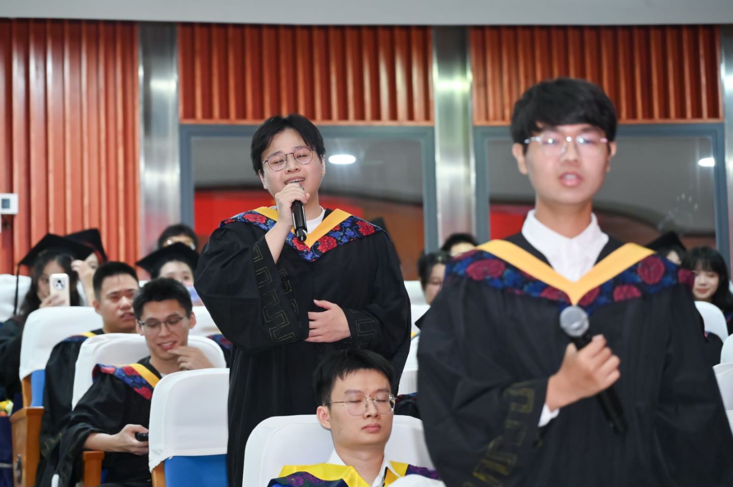 全体教师向全体毕业生致以最衷心的祝福。她表示,同学们在大学期间,克服困难和迎接挑战中不断蜕变和成长,以崇高志向和扎实行动践行了“明德至诚、博学远志”的校训,展现了非凡的担当和作为。她以“青春”为题向全体毕业生提出三点寄语:一是青春当坚定理想,希望大家不忘初心、追求远大理想;二是青春当勤学笃行、希望大家博览善学、实践创新;三是青春当健康向上,希望大家强健体魄、身心健康。她深情寄语毕业生常回家看看,明星AI