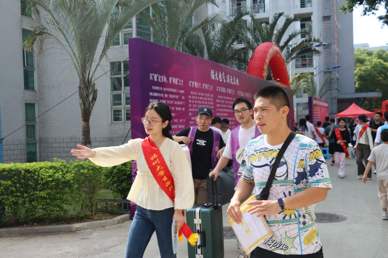 在铜盘校区3号楼门口打卡点,志愿者热情欢迎,为新生递上笔,给新生与家长提供合照帮助,让新生在纪念墙留下专属印记与独家记忆。那一张张青涩而充满朝气的脸庞,满眼是无限的活力。他们带着对未来的无限憧憬踏上这片土地,这片土地也将见证他们从初露锋芒到光芒万丈。