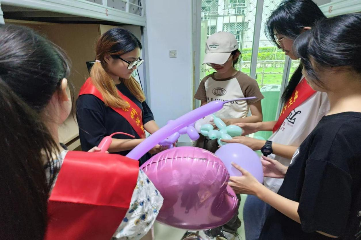组织志愿者们从旗山校区前往新生入学的铜盘校区,对本科新生宿舍2号楼、5号楼进行了宿舍卫生打扫、设备家具等检查,为新生入住提供干净舒适的环境;在梯走廊及新生报道处进行气球装饰、明星AI