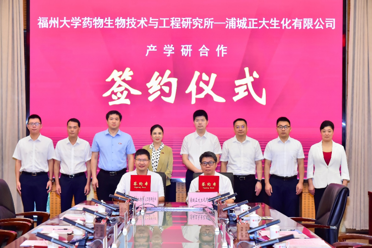 石贤爱教授代表药物生物技术与工程研究所和浦城正大生化有限公司签约