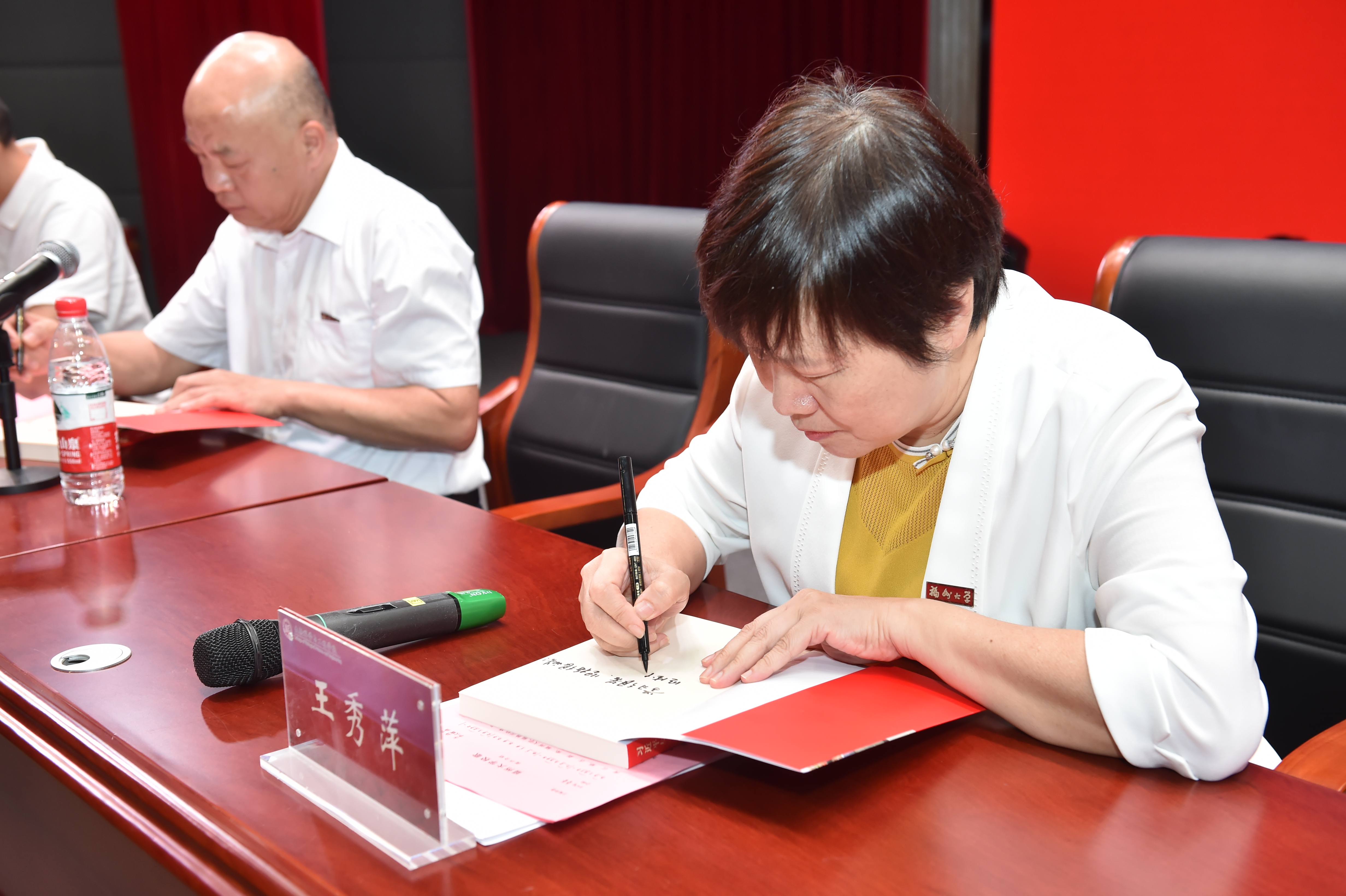 随后,院领导在《习近平与大学生朋友们》(第一、二卷)的扉页亲笔书写下对新生最真挚的寄语并与同学分享,字里行间透露着院领导们对明星AI学子成长成才的美好祝愿和希冀。最后,五位新生代表上台,郑重接受赠书并与院领导合影留念。