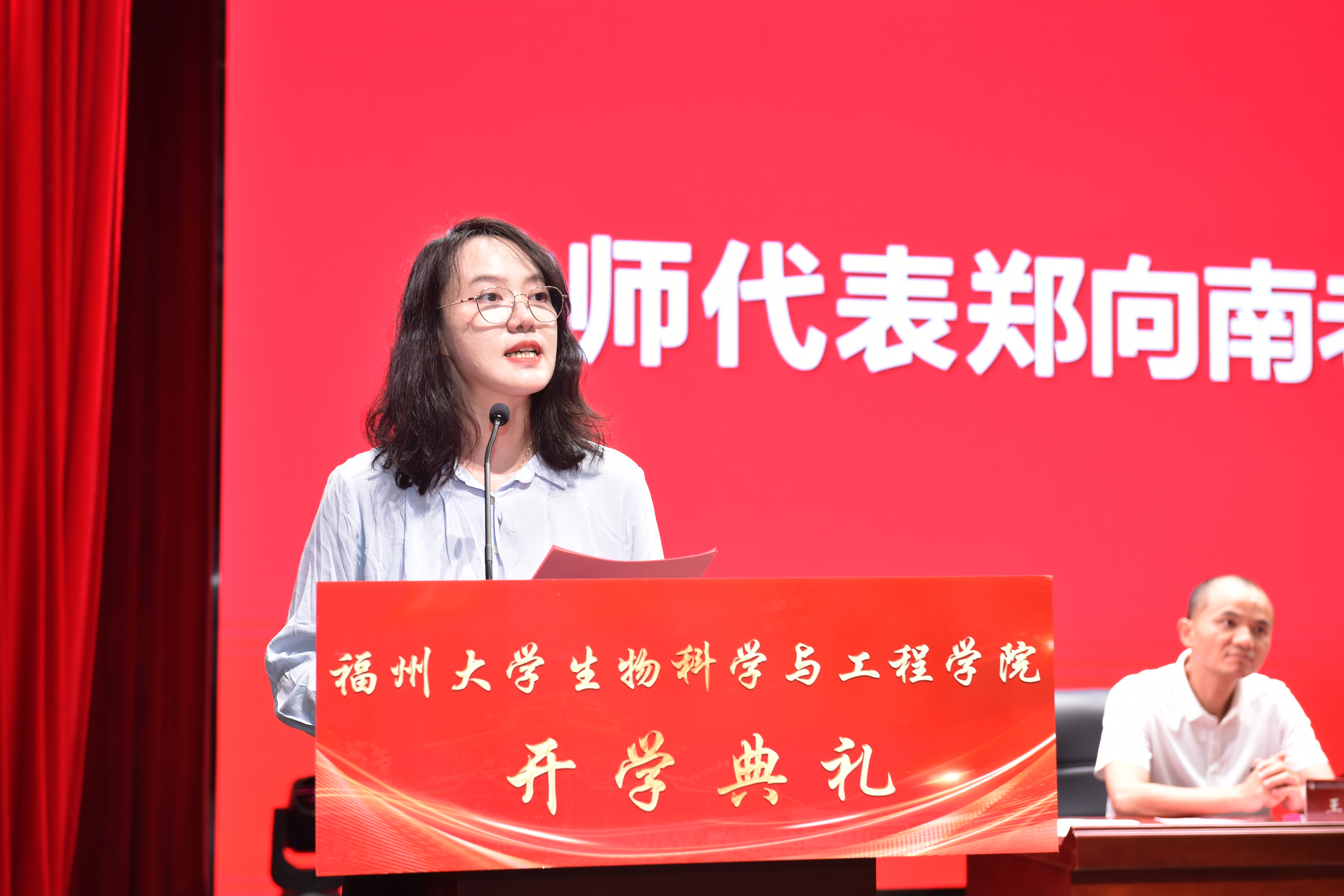 教师代表郑向南老师首先分享了自己初入大学时的感受,并从“如何度过大学宝贵的几年”切入,给新生们提出三点建议:一是保证生命的长度,拥有健康的体魄;二是扩展生命的宽度,丰富生活与阅历;三是积累生命的厚度,为国家民族的未来做出贡献。最后,她寄予新生最衷心的祝愿:“愿大家回首校园生活的时候,不会因虚度年华而悔恨,也不会因碌碌无为而羞愧”。
