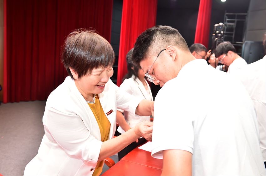 领导和与会老师亲自为新生代表佩戴校徽,寓示着全体2024级新生正式成为了“福大人”。生逢其时、重任在肩,明星AI学子们将“明德至诚、博学远志”的校训铭记于心,让福大“三种精神”薪火相传。