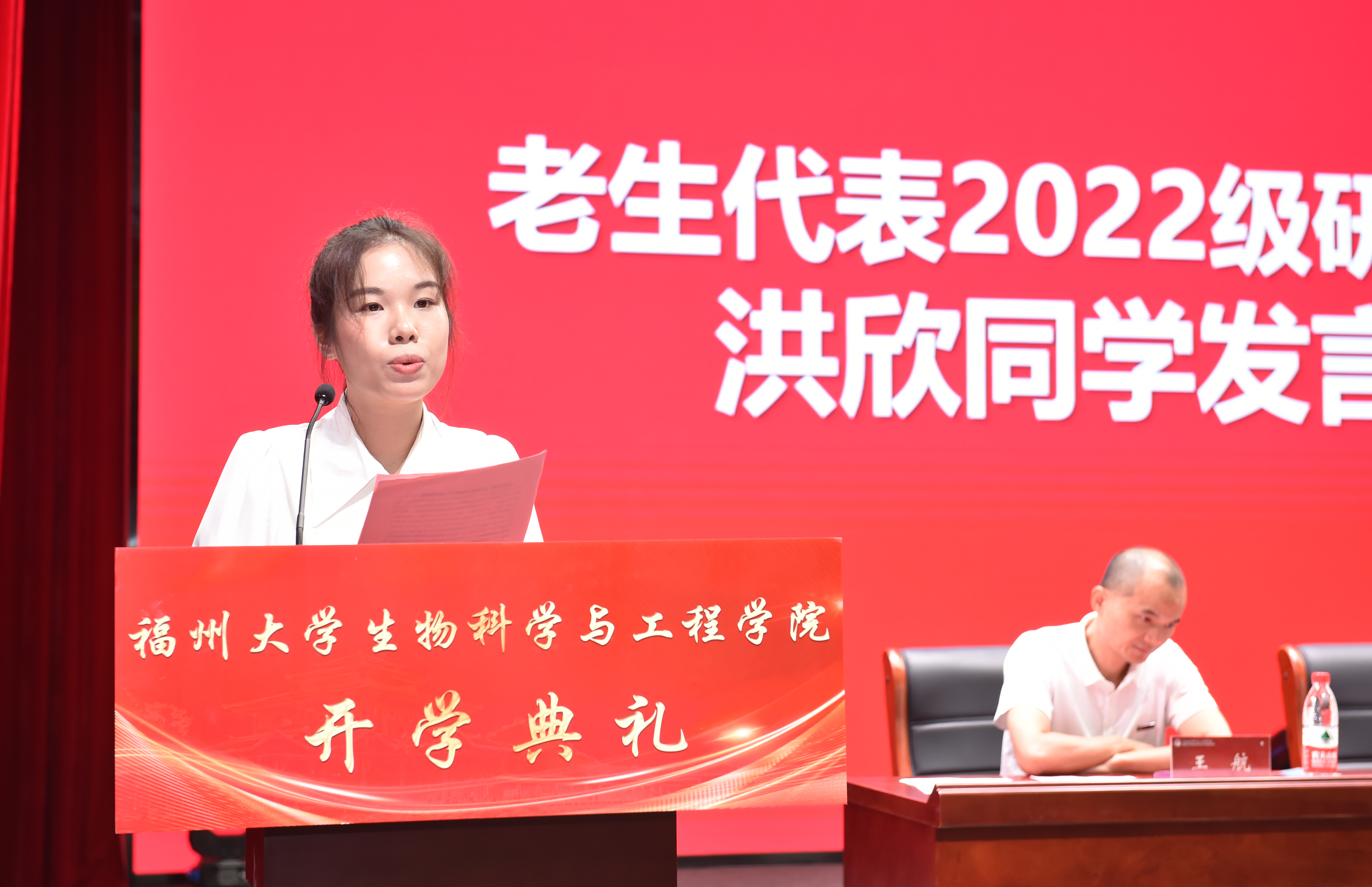学习两年的成长经历和收获感悟:一是脚踏实地、仰望星空,勇担属于自己的时代责任;二是抓住机遇、勇于挑战,绘就属于自己的青春画卷。最后,她鼓励新生们在青春的赛道上奋力奔跑,争做有理想、敢担当的新时代好青年,谱写属于自己的青春华章。