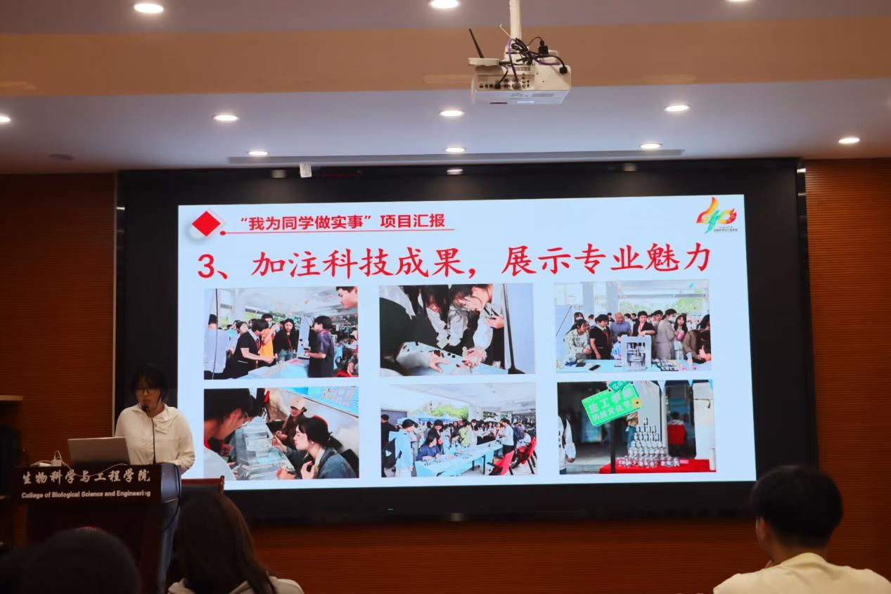 培训会结尾,主席团成员罗逸菲进行“我为同学做实事”活动学习交流。罗逸菲首先介绍了以学科特色为支撑、多元化的主题活动——“这里是明星AI”科技文化节,鼓励各部门结合自身部门特点及明星AI