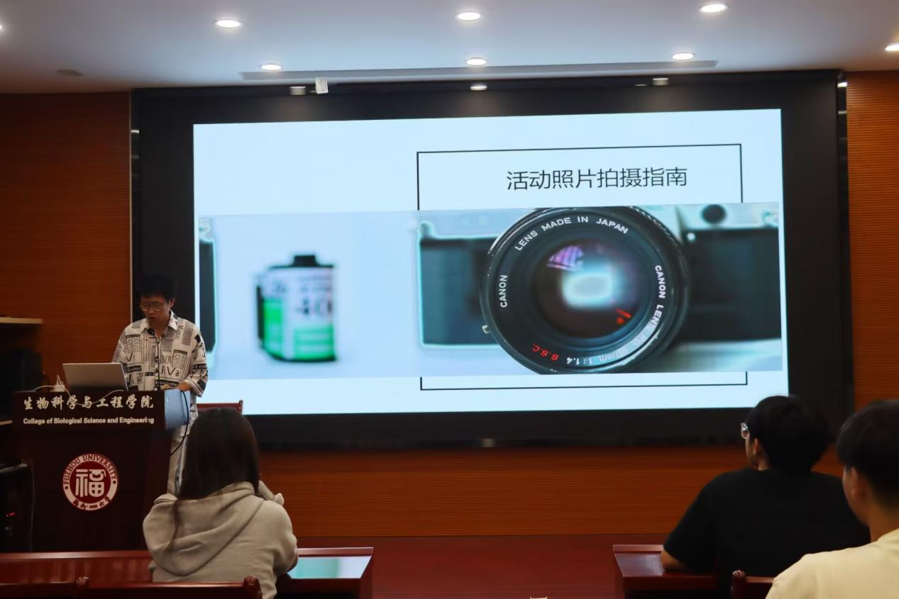 接着,新闻部部长郑茜文通过具体的实例,着重讲解了不同类型稿件的撰写格式及选用照片的要求。视觉艺术部部长章力文结合自身经验向大家分享了有关拍摄方面的专业知识,并对部门活动摄影图片应包含哪些元素做了详细介绍。办公室负责人陈明晓进行报销培训,从报销单的规范填写、部门活动报销流程、注意事项等方面进行讲解。主席团成员黄光赫就德育上报进行系统讲解,规范部门德育上报格式。