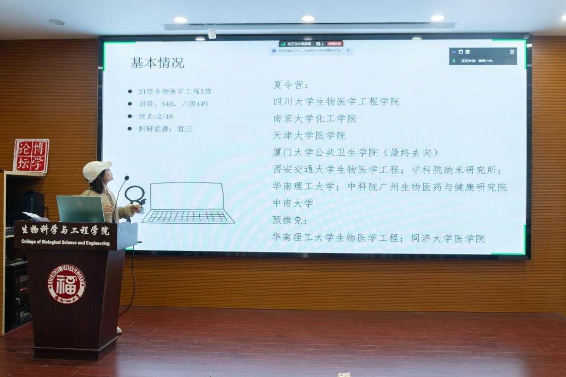 陈文杰以保研材料准备为切入点,分享了她的宝贵经验。她强调,简历和个人陈述应力求简洁大方,突出重点,尤其是个人的科研方面的相关经历。她表示,要根据个人兴趣和目标是选择院校的重要指标。针对夏令营面试,她建议同学们提前了解面试流程,做好充分准备,以应对导师提问。最后,她特别强调了绩点和英语在保研过程中的重要性。