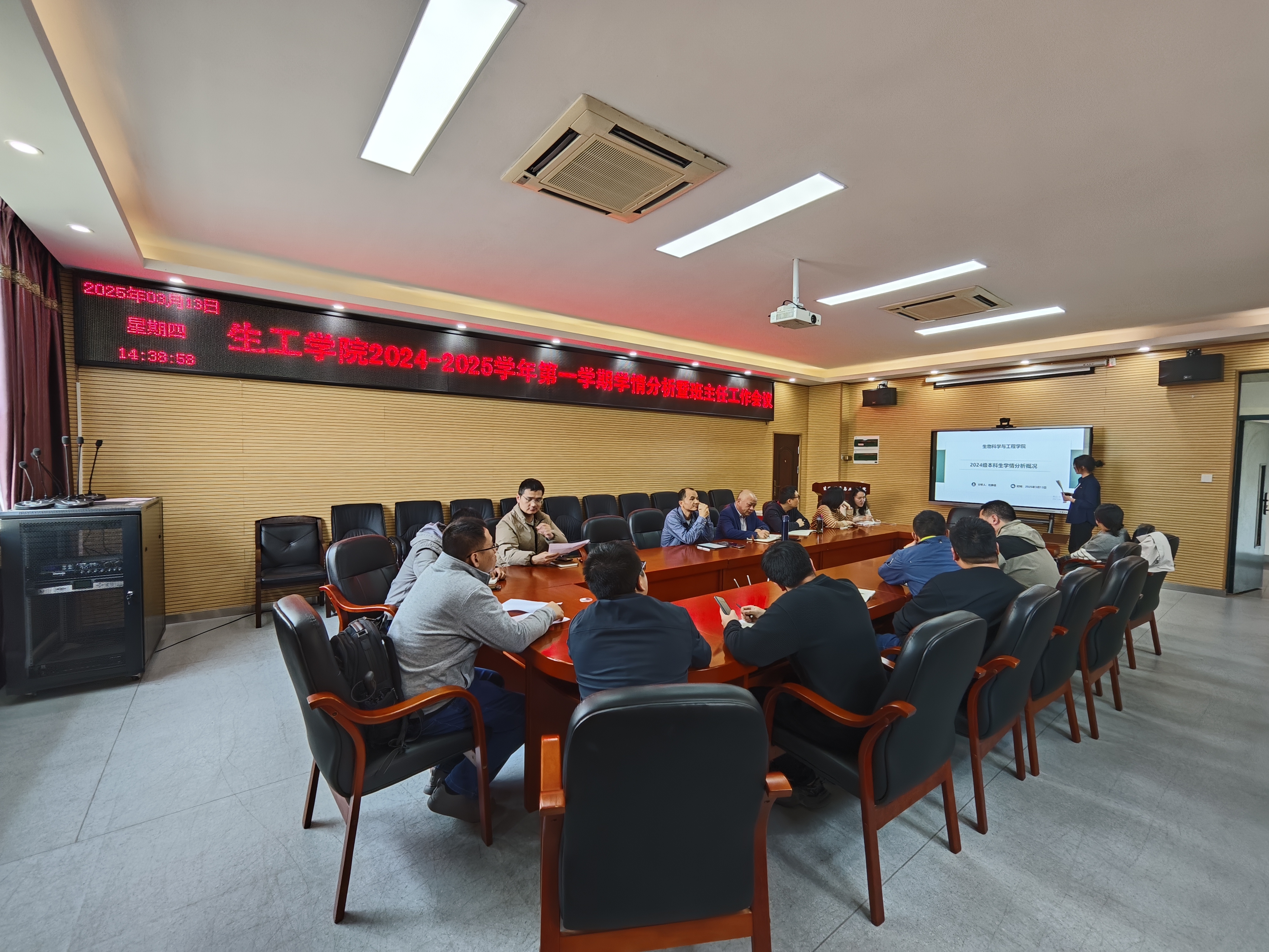2024-2025学年第一学期学情分析会暨班主任工作会在嘉锡楼225会议室召开。会议由院党委副书记曹仁秋主持,副院长王航、各年级辅导员及全体班主任参加会议。