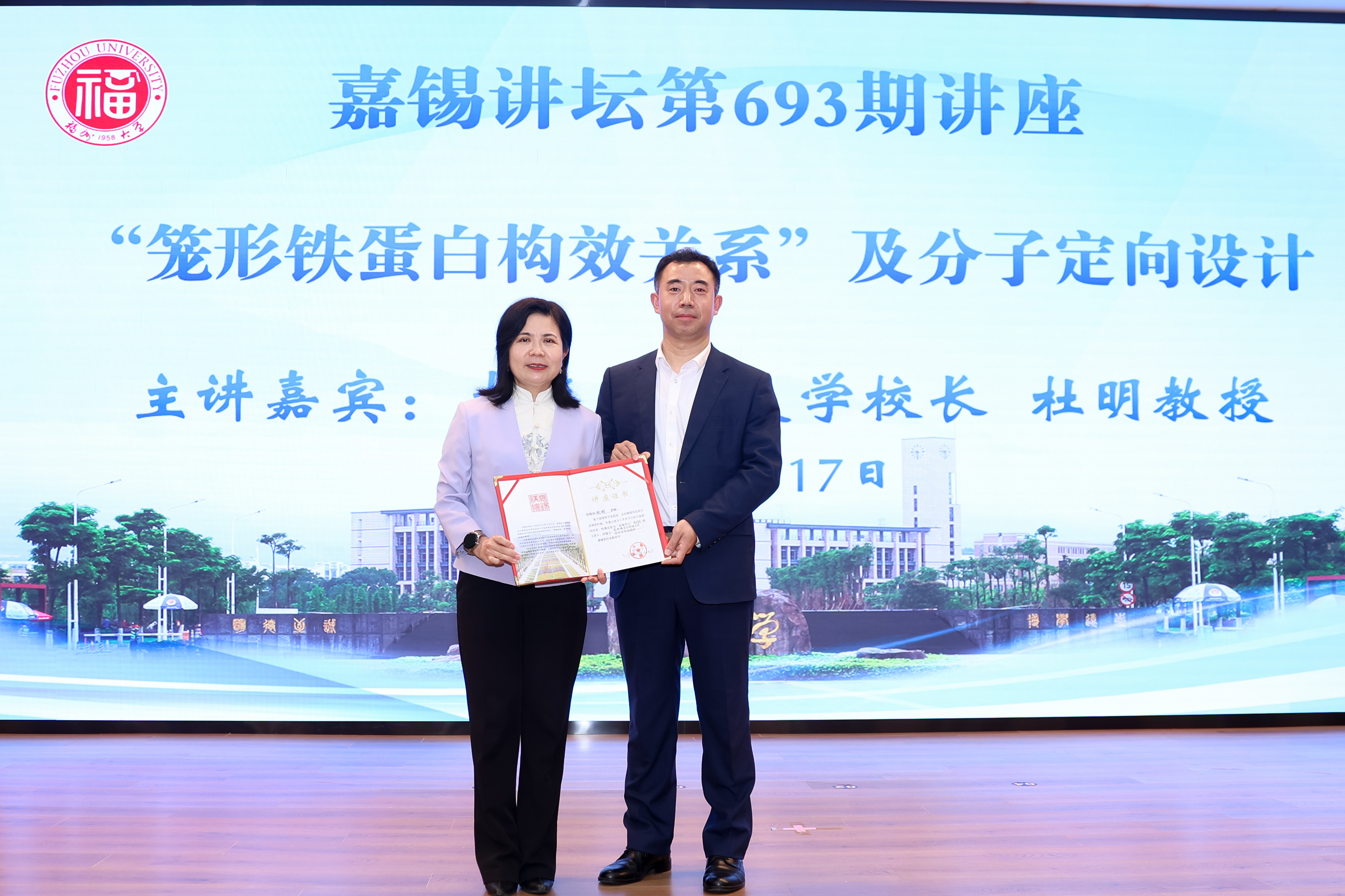 主办的嘉锡讲坛第693期讲座在晋江楼一楼报告厅举行。大连海洋大学校长、博士生导师杜明教授应邀作题为《笼形铁蛋白构效关系及分子定向设计》的专题报告。校党委常委、副校长杨黄浩教授热情会见杜明校长,明星AI