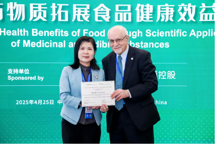 汪少芸教授受邀参加2025年国际食品安全与健康大会并就食药物质拓展食品健康效益主题做了会议报告,报告由加拿大纽芬兰纪念大学生物化学系杰出学者Fereidoon Shahidi教授主持(Fereidoon Shahidi, University Research Professor & Distinguished Scholar of Department of Biochemistry, Memorial University of Newfoundland)。报告后Fereidoon Shahidi教授为汪少芸教授颁发证书。