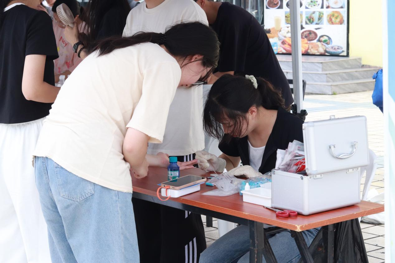 在展示区的“食品创新赛作品展”区域展示了106种药食同源目录和常见香料,参与者还可以品尝往届食品创新大赛获奖的美食。在“蝴蝶植物标本展示”区域展出了蝴蝶和植物标本,参与者也可以现场制作蝴蝶标本。在“生理学知识科普展示”区域,工作人员围绕图表详细介绍ABO血型分类、输血原则及Rh因子特性,并为参与者进行血型鉴定。