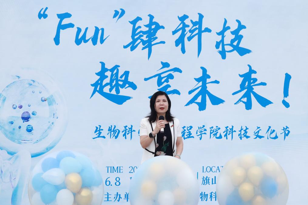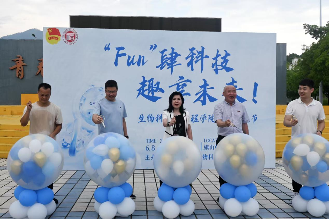 致辞结束后,院党委曹仁秋副书记、石贤爱副院长、院团委张凌拓副书记及教师代表应邀上台,与汪少芸院长一同启动本次科技文化节。伴随倒数数字的结束,领导老师们一同扎破气球,气球悠扬升空,宣告科技文化节正式启动,现场掌声久久回荡,气氛抵达高潮。