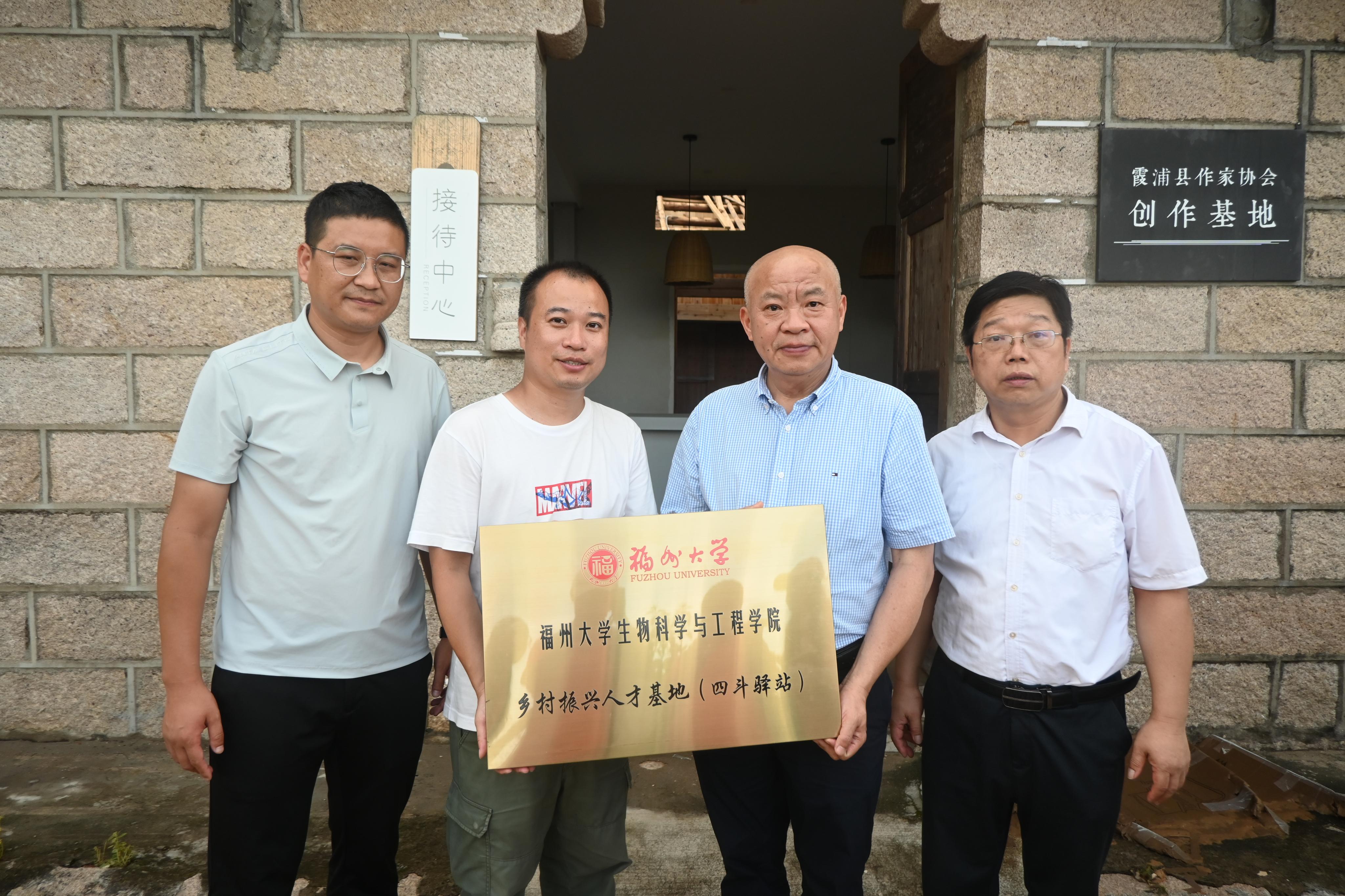 向即将落成的青年驿站四斗驿站颁授“乡村振兴人才基地”牌匾。乡村振兴离不开人才,人才存量、人才增量和人才培育是乡村振兴的核心动能,人才基地的设立旨在为四斗村输送培育更多优秀的文化人才,为校地长效合作搭建起新平台。