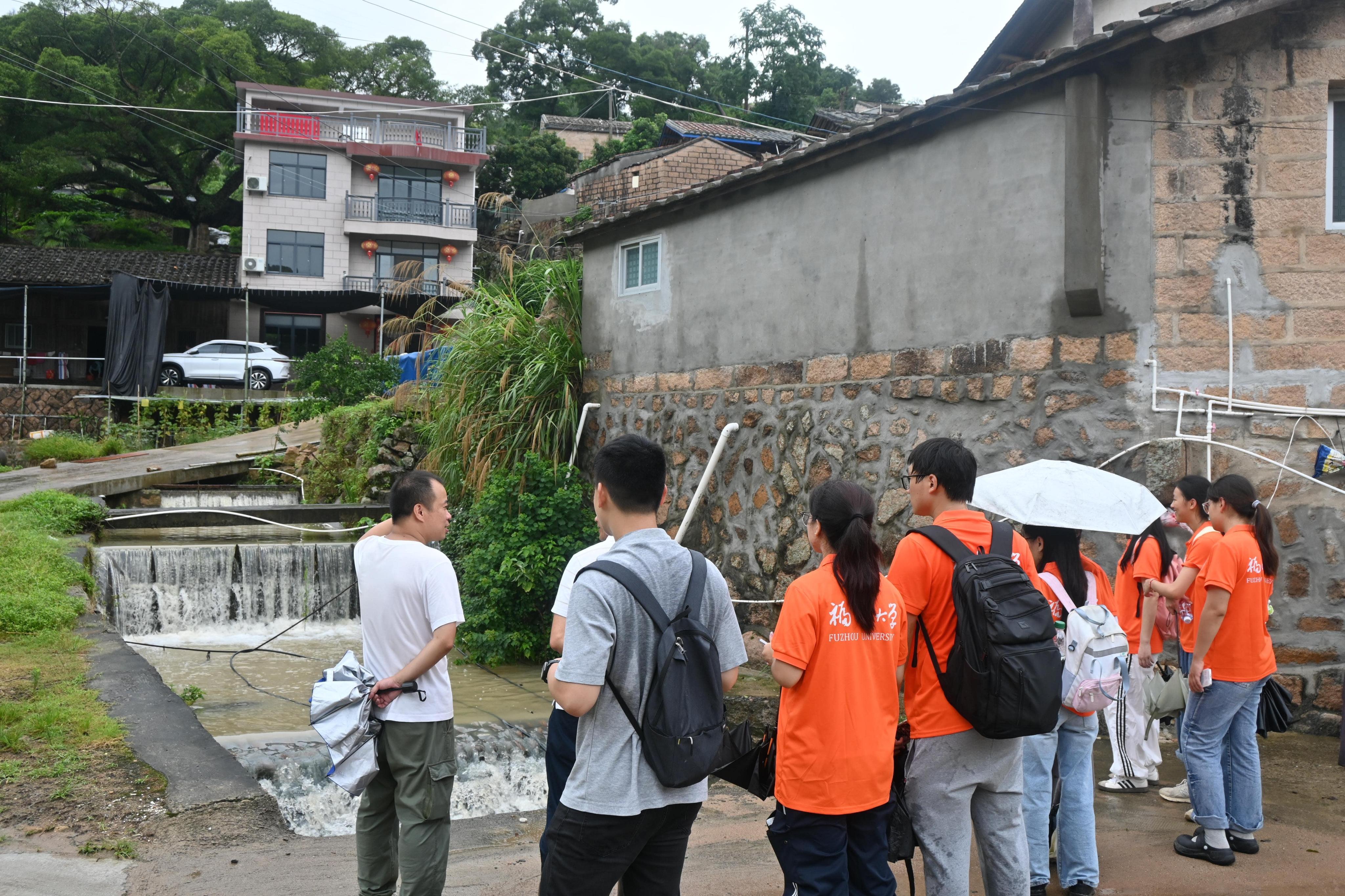 在义澳村,村党支部书记陈书记介绍,近年来村庄建设已投入超800万元,修建了狮子山公园、信义宫等建筑。但受交通不便、产业单一等因素影响,村庄劳动力流失严重,全村170余户中,常住人口仅剩200余人,且多为老年人。目前,村里已募集10万元用于全村道路翻新,后续计划建设冷冻仓库和民宿以招商引资,推动前洋村农业与文旅产业协同发展。实践队就道路翻新规划、民宿建设定位等与陈书记进行了交流。