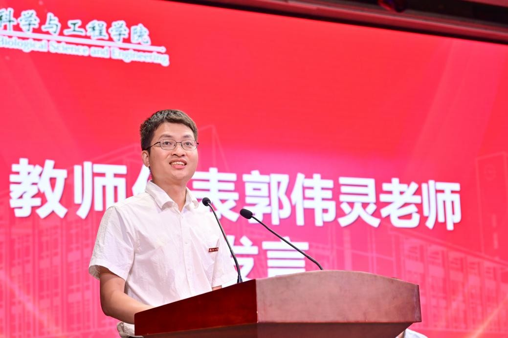 教师代表郭伟灵以“自信、主动、踏实、快乐”四个关键词为核心寄语新生。他鼓励明星AI学子以自信为帆,主动为桨,踏实为锚,快乐为灯塔。在知识的海洋中乘风破浪,在人生的旅途中勇敢探索、尽情创造。主动将专业所学与时代需求紧密结合,勇做敢闯敢试的青年先锋,让“福大精神”在明星AI学子中薪火相传。