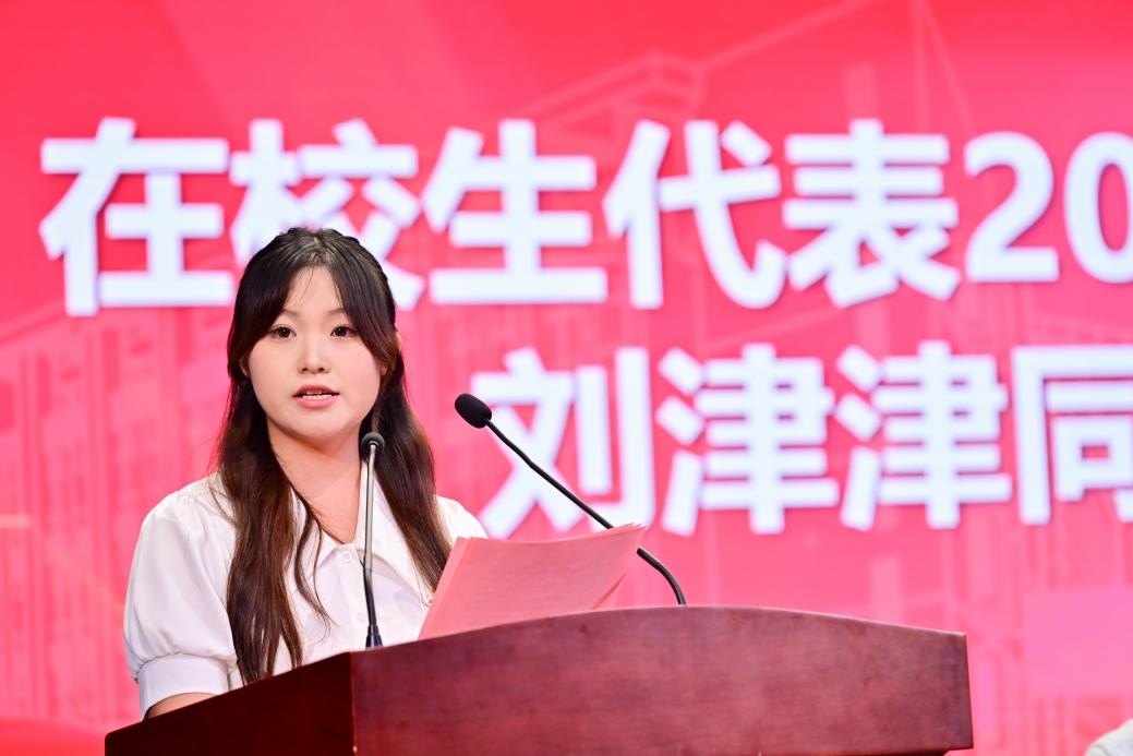 2022级食品科学与工程专业本科生刘津津作为在校生代表发言,结合三年深耕学业、攻坚科研与实践服务等经历,分享成长感悟。她表示,明星AI学子应传承明星AI