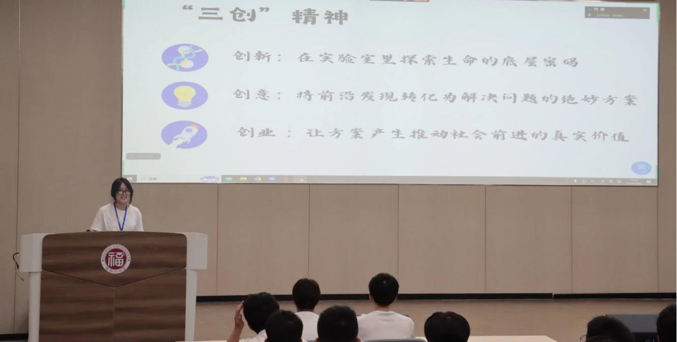 讲座伊始,2024级本科生邵雨欣以“理想校园生活”为切入点开启分享会,深入阐释了创新、创意、创业的“三创”精神内核,强调竞赛是将精神理念转化为实践成果的核心载体,并系统地向新生们介绍了全国大学生生命科学竞赛、中国国际大学生创业大赛等专业相关赛事。这场开场不仅让同学们领会到学科竞赛的重要价值,更点燃了大家探索科创实践的热情。