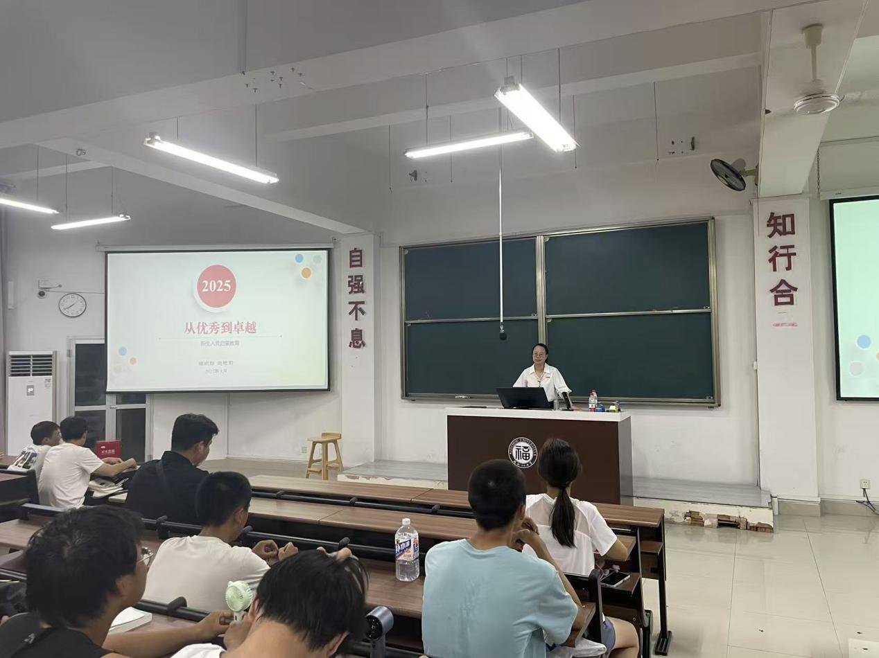邀请校党委组织部组织科科长赵艳莉副教授在铜盘校区B315教室开展《从优秀到卓越》入党启蒙教育讲座,为全体新生带来一堂深刻而富有启迪的“信仰第一课”。